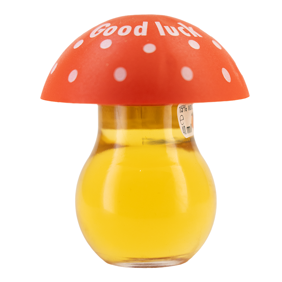 1. La mignonnette de liqueur marc de raisin champignon " good luck" de chez Nannerl est le cadeau kitch, rigolo pour égayer vos repas de fin d'année!